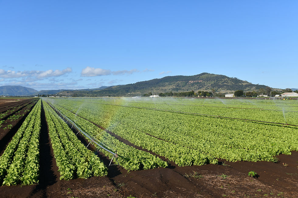 Irrigating a huge crop of lettuce growing at Gatton in Queensland, Australia.